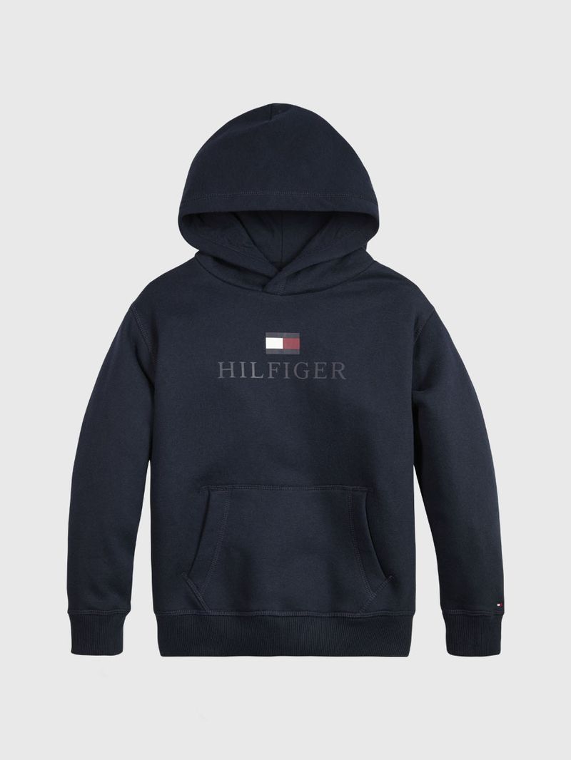 Este buzo de algodóns y capucha se realza con el inconfundible logo de Tommy Hilfiger estampado en el pecho.
