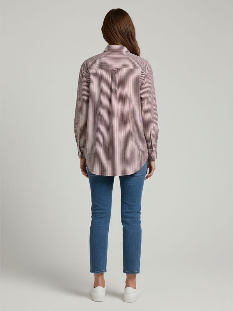 Disfruta de los modernos diseños que trae Tommy Hilfiger esta temporada, esta camisa manga larga de corte relajado se adorna con un atractivo estampado de rayas verticales que se complementa con los distintivos detalles de Tommy Hilfiger.