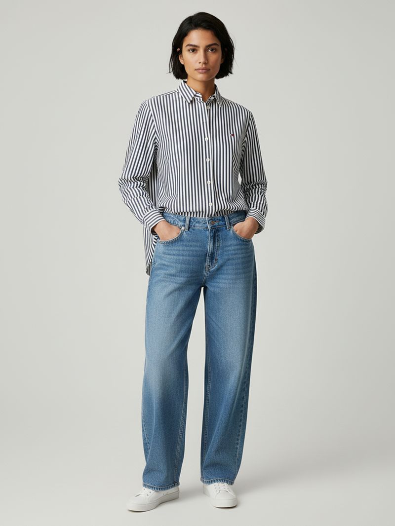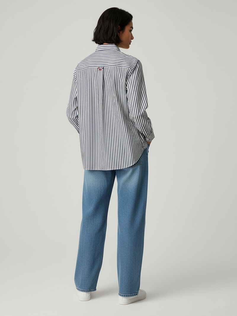 Disfruta de los modernos diseños que trae Tommy Hilfiger esta temporada, esta camisa manga larga de corte relajado se adorna con un atractivo estampado de rayas verticales que se complementa con los distintivos detalles de Tommy Hilfiger.