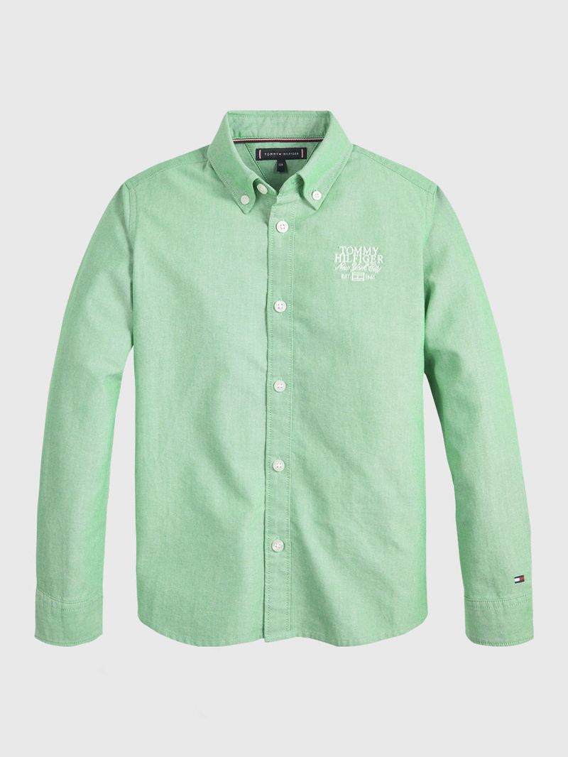 Esta moderna camisa Oxford, confeccionada en un cómodo tejido de algodón elástico, luce un elegante logo de Tommy Hilfiger en el pecho.