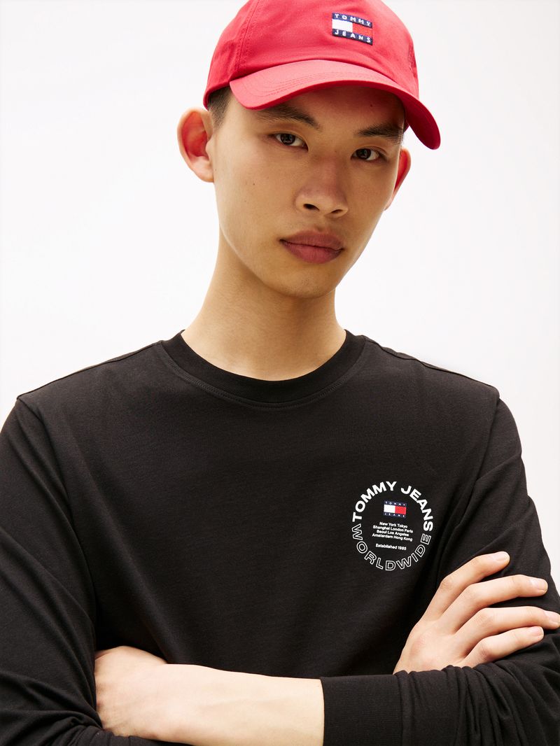 Esta sencilla remera de corte clásico, confeccionada en cómodo punto de puro algodón aterciopelado, luce vistosos detalles distintivos que le dan un toque divertido al diseño.